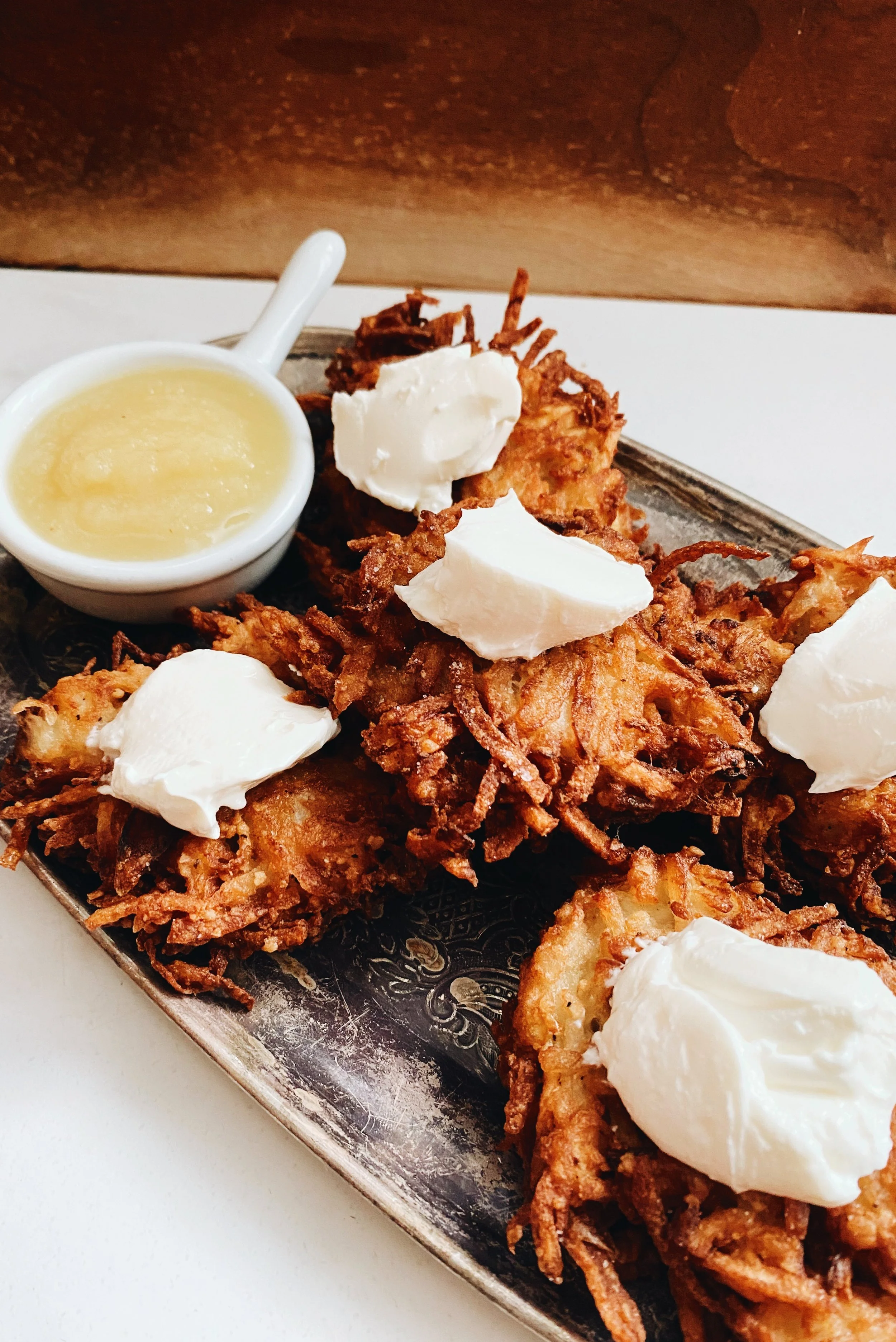 Gently place approximately 2 tablespoons of the latke mixture in to the hot oil and gently press down. Don’t overcrowd the pan - work in batches.
