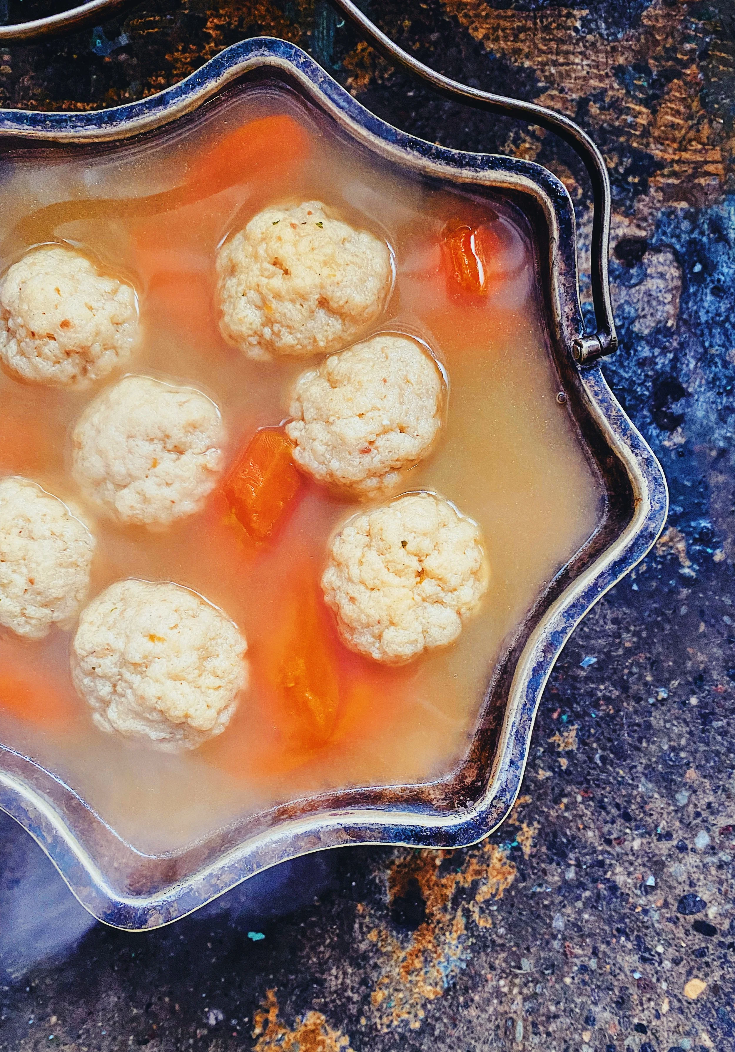 Shape your balls slightly smaller than a ping pong ball and gently place in the hot broth. Cover the pot and cook the balls for 25-30 minutes for a slightly chewy texture or a bit longer for a more tender consistency.