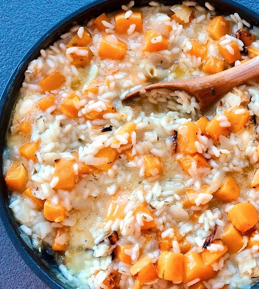 WHEN THE RICE IS 90% OF THE WAY DONE, ADD IN THE ROASTED SQUASH AND STIR - COOK FOR A FURTHER 2-3 MINUTES